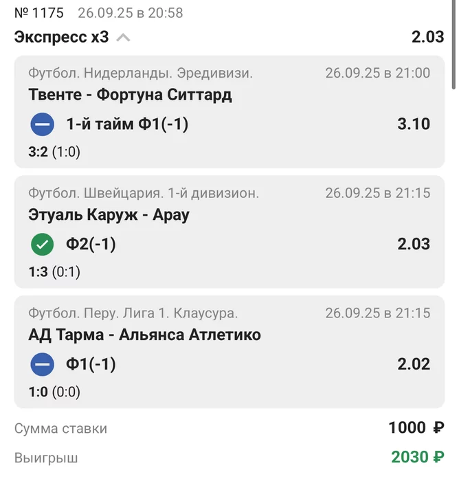Результаты за вчера 26.09.25. 10 Экспрессов проиграло, банк уменьшился на 10 000р, итого 184 360 р,+84,36%, 5 экспрессов в разгоне на сегодня с прошлого дня!