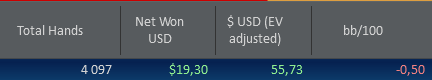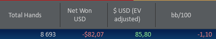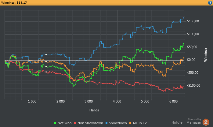 Кстати на 9макс у меня тоже график с EV был в далеком плюсе, а по netWon в далеком минусе. Потому решил 6 макс играть.