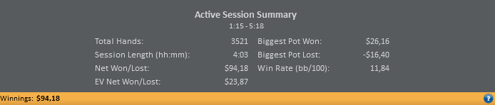 Итоги: Ses#5 Hands 25366 VPP 1341,21 Радует, что играть стал чуть агрессивней, чем этот парень с нл25ть) беру паузу до 12-30 МСК, и после тренировки надеюсь отыграть не менее успешно)