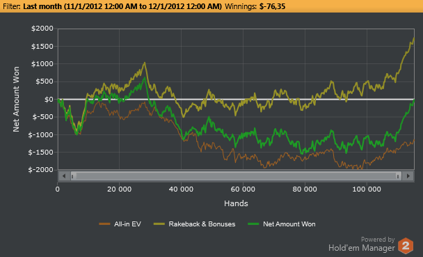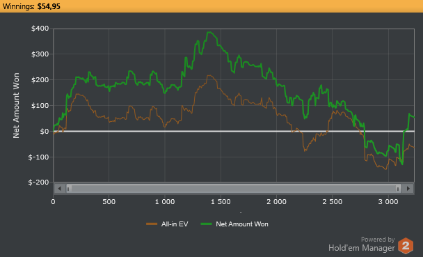 А вообще этот месяц показал как важен в омахе РБ . Ибо диспа просто колосальна даже с моими достаточно спокойным стилем std dev - 11 , вот пара сессий , 28.11(брал половинку выходного) и сегодня ...