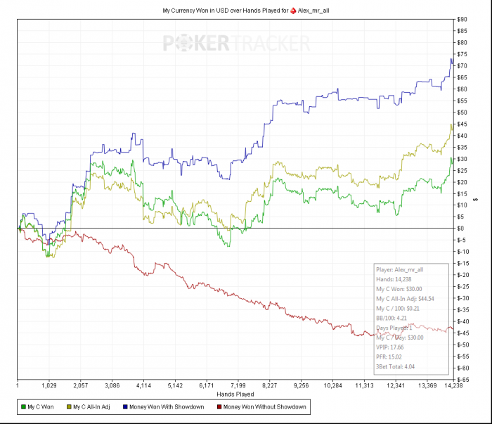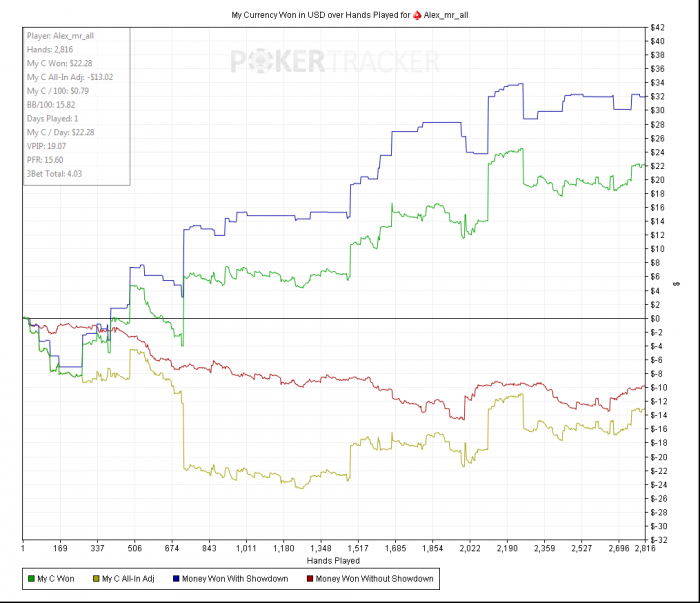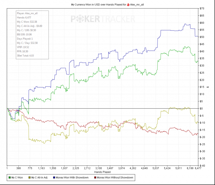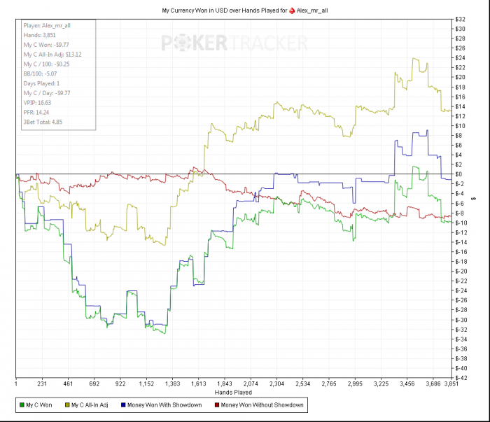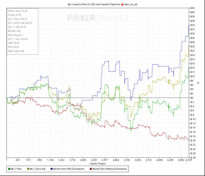 Ну стыдно даже за сегодня график показывать.... Но игрой я своей все равно доволен, потому что играть я стал еще агрессивнее. Занимаюсь просто жирным вэльюбеттингом, который мне оплачивают почти всегда, а иногда я сам с себя добираю, как здесь:
