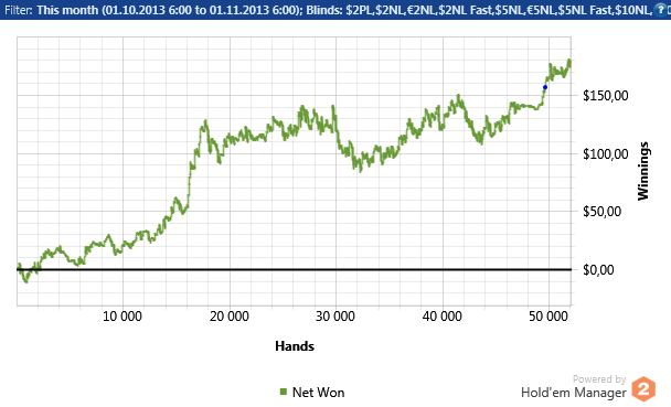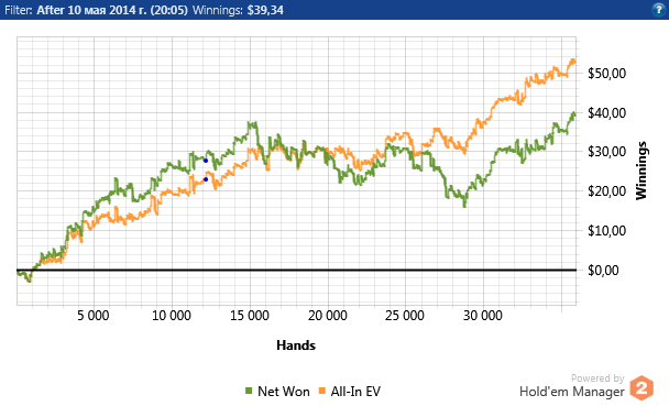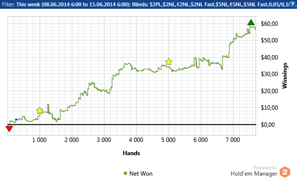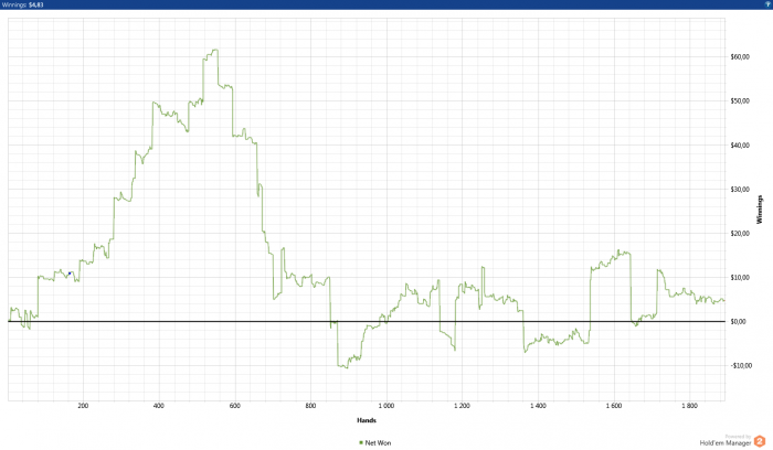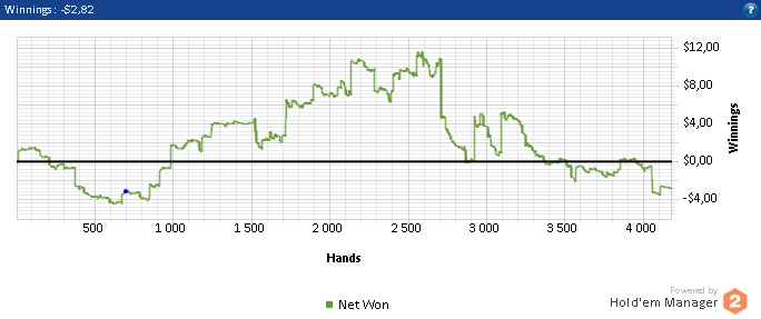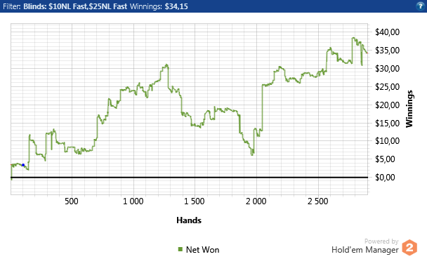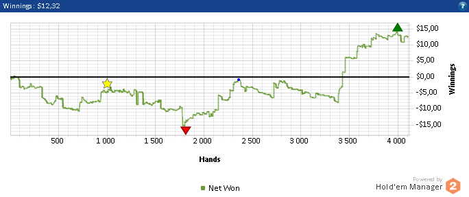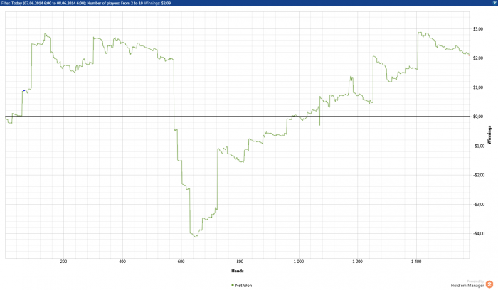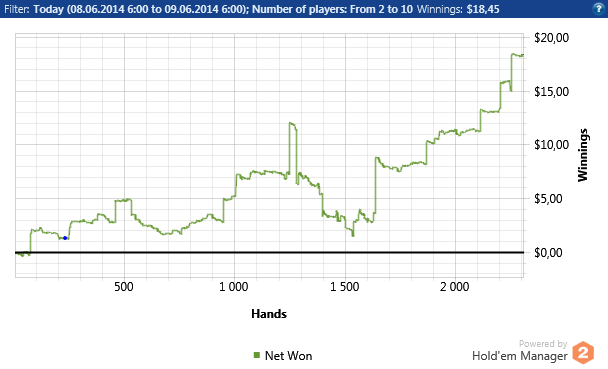 Теперь по игре,нл 2 такой же не сложный лимит ,глупость игроков только поражает У меня вышло около 12 бб при игре в 15 столов + без селекта Если селектить и играть меньше столови иметь майнинг(если конечно такое на нл 2 бывает ) можно нл 2 бить 20бб По традиции график с нл 2
