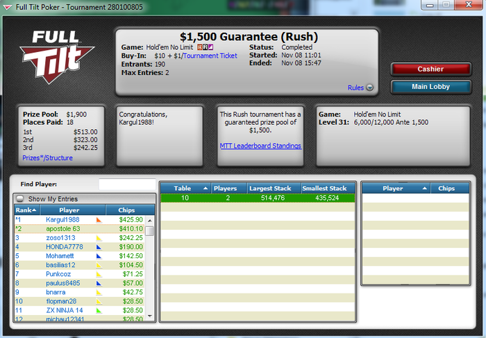 No Limit Holdem Tournament