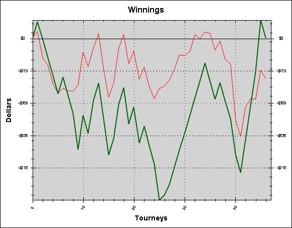 Доброго вечера всем. Давно тут не писал, конец 2013 года был не плохим, выиграл первое место за 109 долларов, теперь мой бр для лудомании составляет около 4000, играю хедзапы по 100 и турниры иногда. Также установил хм, чему очень рад. Ниже графики за последний месяц и за сегодня