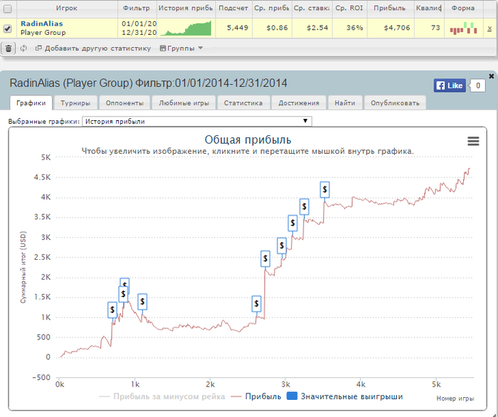 Как видно, игрок стагнирует в рамках разбираемой базы рук. Я полностью согласен с этим, все что я выигрываю я вывожу на свои нужды, и оставляю себе обычно 100-200БИ и продолжаю делать профит. Я не развиваюсь, но если посмотреть на вещи реально, то это так и есть. Надеюсь в новом году произойдет много изменений, в конце года я заведу дневник в разделе средних лимитов. Остановка в развитии конечно сказывается и тем что я совсем не анализировал свою игру. Что знал то и делал, а делал я много чего не так. Буду исправлять свои ошибки, и пытаться расти по лимитам.