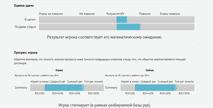 Заметны пробелы в игре на бабле, в позней стадии и в ранней стадии, есть к чему стремится и на что в своей игре стоит обратить внимание. Будем справлять. Ну и наконец последний важный пункт, это вывод прогрессе игрока в целом: