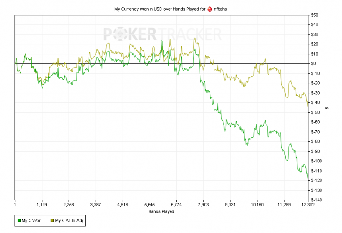После 4х плюсовых месяцев на нл10 (ну как плюсовых 3бб на 100 на 300+к рук) не думал что можно отыграть месяц в минус, но апрель стал таковым - сначала нл 25 далеко не по бр, плюсанув там за пару дней 8би а патом за день спустив 9би решил вернуться на нл10 чтоб не залиться окончательно, но тут начался полный пздц... После нл25 10ки казались скушными, деньги просто не чувствовались и я не думая отдавал стек за стеком, после сделал недельный перерыв: думал отдохну, развеюсь поможет но х.... там че помогло в итоге месяц вышел в -500$, пришлось снять все бонусы и вывести 250$ жить же надо на что то. В итоге бр составил 300$. Тут начинается май :