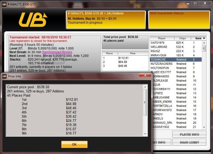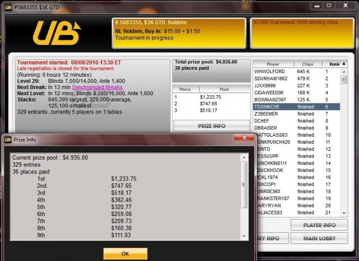 PokerStars, $400/800 NO Limit Texas Holdem Tournament, 9 Players