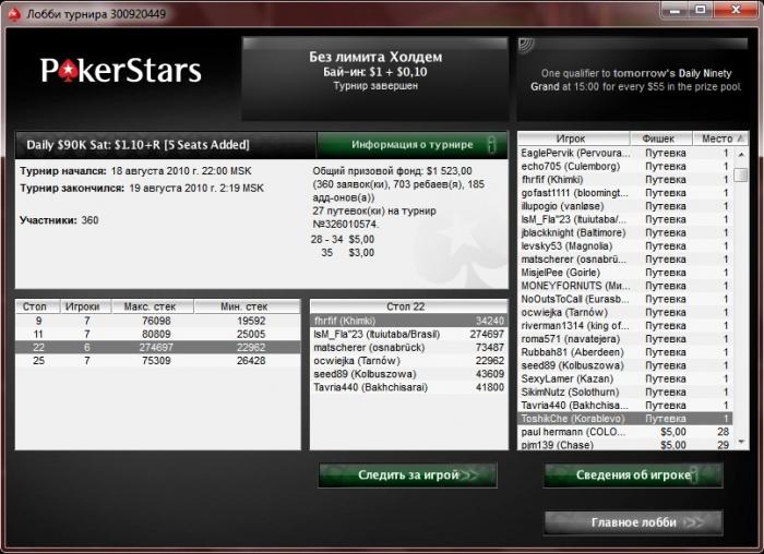 Аут из $2,5К GTD 15$+1,50$ Holdem Deep Stack (38/208) в две раздачи