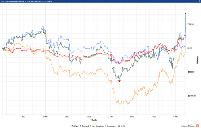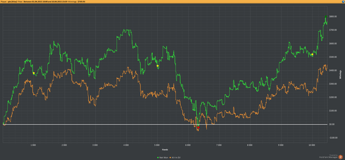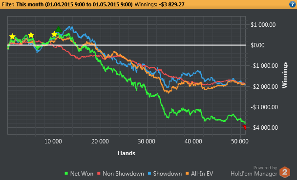 выиграть N би на 50 (специально не хочу озвучивать цифру, пусть будет только у меня в голове)отыграть март исключительно на 50 в хороший плюс (в случ необходимости спуститься ниже).п.с. Весь месяц на 50 сдавали отвратительнейшие сикраны. Чего как раз нельзя сказать про 100. Но там 10к рук всего, так что мне кажется, что просто не успели) Несколько раздач из большого количества подобных, которые так здорово повлияли на мою игру. Я не утверждаю, что сыграл в них хорошо, но эти шоудауны просто не могут не задеть за живое..
