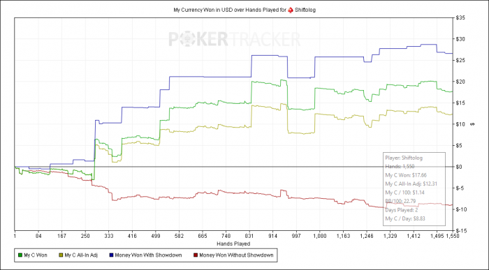 Total pot: $22.46 | Rake: $1.01