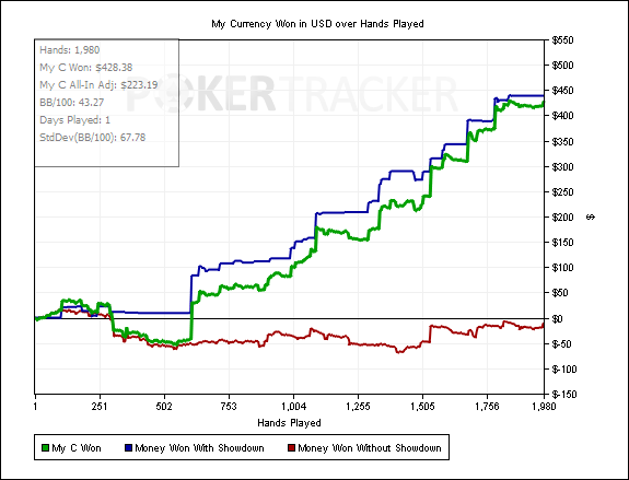 PokerStars - $0.50 NL - Holdem - 9 playersHand converted by PokerTracker 4MP+2: 153.16 BB