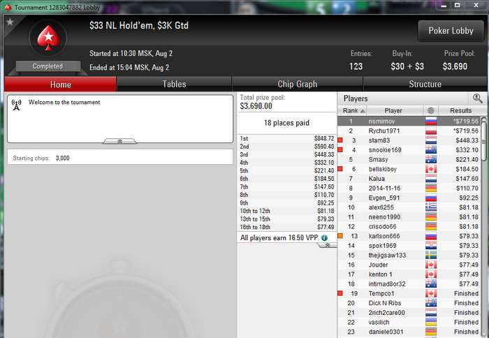 nsmirnov @ 3.8.2015 21 час игры в лучшую игру с картами и фишками (с), 109 турниров, топ1, 16 ИТМ и +100 баксов грузить воскресенье с 8 утра до 1 ночи, возможно, не лучшая идея