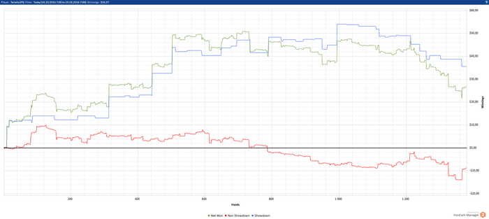 Чувствую, как накапливается усталость, так что в среду будет выходной. А сегодня и завтра действую по плану. Забавное наблюдение: учитывая, что я давненько уже играю, и припадками даже работаю над игрой, у меня образовалось некоторое чутьё на около-нулевые ситуации. Вот когда это чутьё говорит, что сейчас около-нулевая ситуация будет - надо фолдить пока что! Ибо рейк делает из неё минусовую всегда!