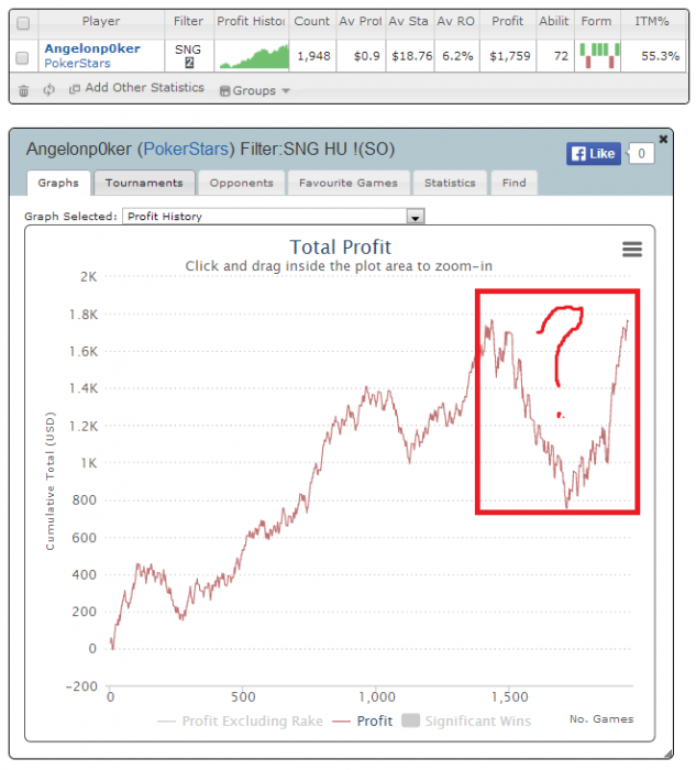 На нижней отметке, где я просел почти до - 1к было реально тяжко, особено учитывая, что я вывел частичку БР на эксперимент в бетинге. По БРМ должен был спускаться ниже, но оттягивал этот момент, как мог - давая себе дополнительно ещё поиграть несколько БИ за счёт полной концентрации на одном столе. Очень рад, что удалось всё таки остаться на лимите, ибо было бы крайне неприятно получить такой откат сходу. Но всё хорошо, что хорошо кончается.