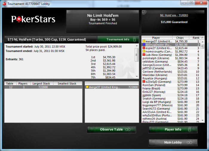 Марафон Старт 11.07, последний день игры 30.07 У меня 20 дней до Кипра. Сыграю ~15 из них, 20-35 мттшек каждый день. Получиться примерно 400. БР ~30k, Катаю почти всё что можно 20$+ Eжедневные отчёты и скрины с финалок гарантирую))