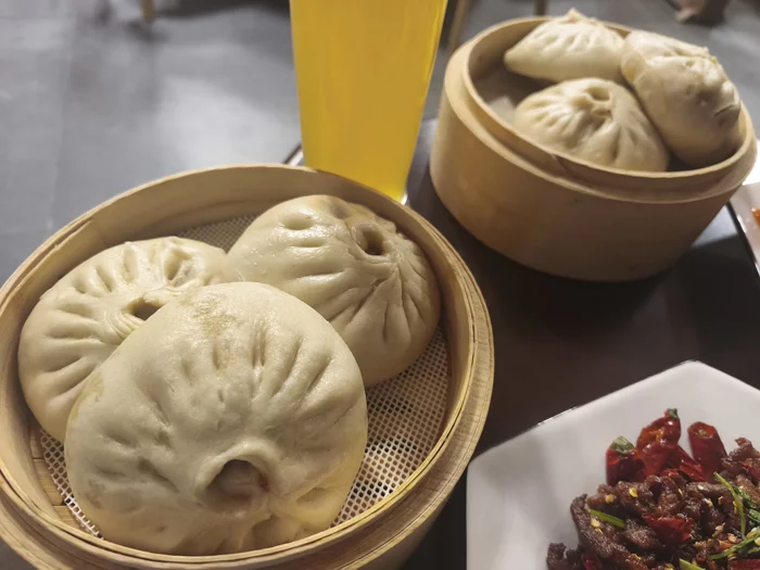 Заказали острого ягнёнка, свининку с морковкой и какие-то штуки типа хинкали, но китайские: