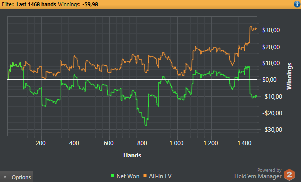 уже тоже изрядна подзаипала своим присвятым рандомом - кому-то 50бб/100 + каждый второй ривер в подарок по акции, а кому-то перманентный пиздец, просто без шансов, уябывают по кд, если в раздаче будет ривер, то в 95% случаев я знаю какой он будет, не шутка, сегодня почти все угадал, аж до истерического смеха