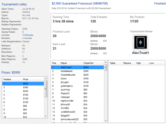 Вчера был удачный день :) Нет возможности нормальные скрины выложить, так что только так. 2 топ3 и 3 финалки за сессию! (третья была в мелком турике по 5.50 на лотосе, там дали долларов 40 за топ6 )