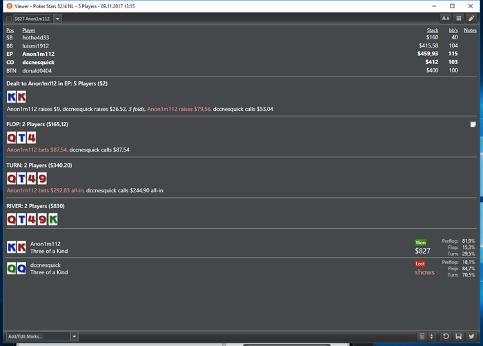 Poker Stars, $1/$2 No Limit Hold'em Cash, 5 Players