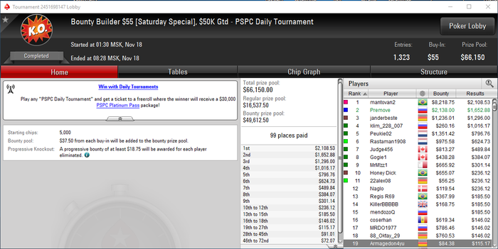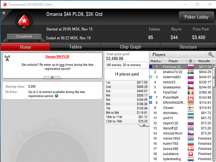 Не) я вышел чипаком в ХА. Оппонент просто нереальный попался) он дважды предлагал поделить, но после 90% его раздач за финалкой поделить для меня бы значило проиграть. В итоге флиплунулись за его вылет АК в ВВ пркылоп, а далее меня добили) в общем, человек невероятно везучий оказался