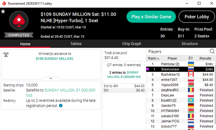 АК<QQ и 99<AQ префлоп. А так игрой своей доволен. Можно было не открывать пару тройку рук и сдаваться и не упираться когда явно был позади. А так нормально, но без призовых за исключением одного баунти.