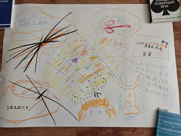 Сегодня выполнил задание от психотерапевта: нарисовать рисунок на тему "я" и "мои сокровища". Надо отгадать, что значит этот рисунок - это одно слово Что же это за мои сокровища?