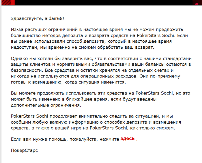 ALDAIR68 @ 24.02.22Всем привет. Есть ли люди, которые могут оценить риски отключения игроков из России от покеррумов на основе недавних событий? По типу того, как патипокер покинул чат