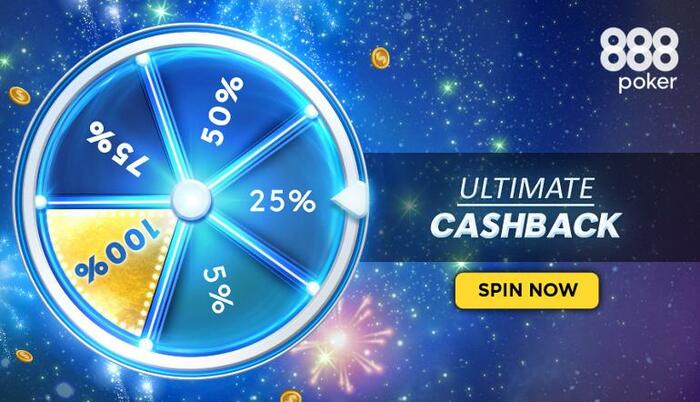 Условия предельно просты. Пользователи 888poker, которые принимали участие в покерных играх или играх казино, а также ставили на спорт, на следующий день получают право на вращение колеса «Максимальный кэшбек» — размер возврата средств за предыдущий день рассчитывается в соответствии со значением, выпавшим на колесе. С разной вероятностью выпадения можно получить 5%, 25%, 50%, 75% или 100% кэшбека за прошедшие сутки.