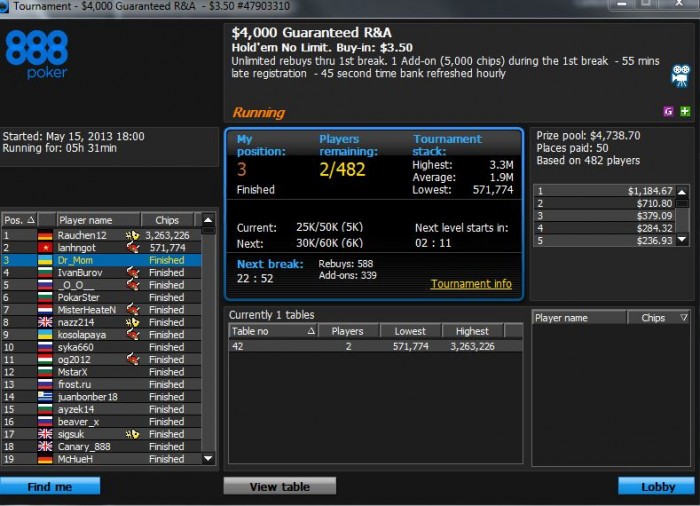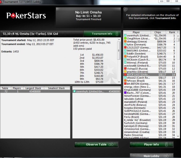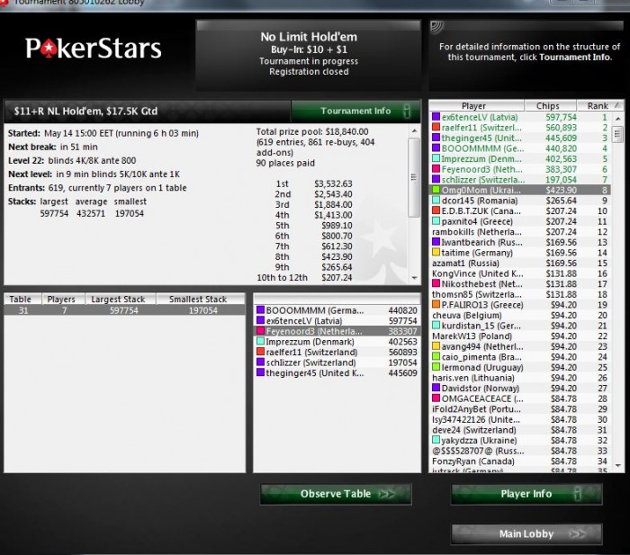 Всего за май отыграл 300 мтт с рои 29%, при этом получил порядка 3 печальных недоезда и порядка 20 предфиналок в более-мелких турнирах. Радует, что при всем этом удается бодаться в плюс.