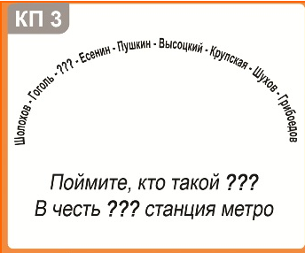 Ну да, всё верно. Фамилии не даром написаны полукругом. Это схема Бульварного кольца, которое и не кольцо на самом деле, а полукольцо. Памятники расположены именно в такой последовательности. Пропущен Тимирязев. Значит, метро -Тимирязевская.