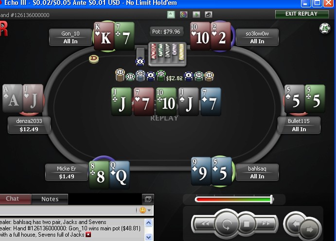 denza2033 shows (Full House, Tens full of Nines) (Pre 18%, Flop 6%, Turn 2%)