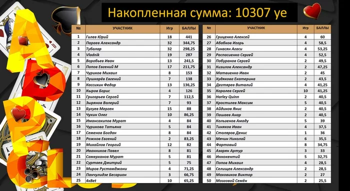 Итак, очень выгодным вход на предстоящий сентябрьский Мейн Ивент будет для следующих счастливчиков: