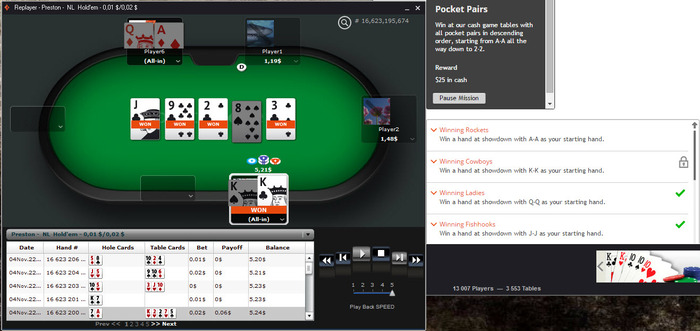 Эти миссии не могут быть просто обновлены. Мы видим, что вы выполнили эти руки, но иногда он может не показать. Это, как говорится, мы советуем вам не использовать покер-трекеры, такие как один в скриншотах, как мы не можем подтвердить, что трекеры и программное обеспечение сторонних производителей хорошо работает с нашей системой.