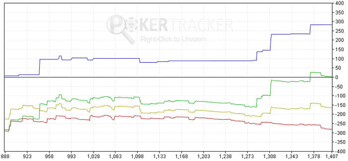 С покером на этой недели было хорошо. Играл не много, но вдумчиво, и только на результат. Каждый раз как садился играть, я знал, что мне это надо больше, чем все остальным за столами, вместе взятым. И результатом остался доволен.