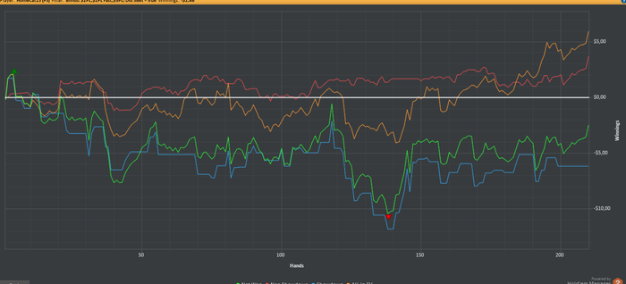 Я смотрел и смотрю и буду смотреть много видео (в тч Ваш марафон, за что отдельное Большое спасибо). В свое время перейдя из нлх я просмотрел кучу видео и стартанул что то типа 60бб\100. В апе игра казалось легкой. Потом все поломалось. По хорошему завидую Вашей уверенности когда Вас стрикует (типа пло100 в марафоне). У меня такой нет. Вот игра и ломается сильно. Подстраиваюсь как могу. УЖЕ заработал много денег по ЕВ ... понимаю Вас. Но сложно принять глядя на тающую кассу. Понимаю - НАДО. Буду учиться.