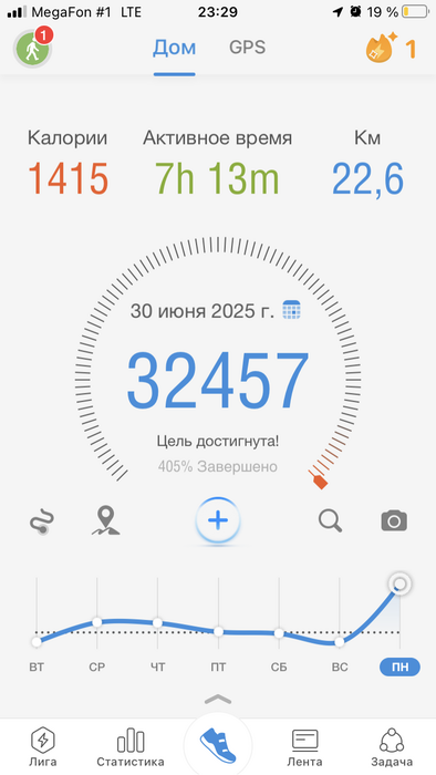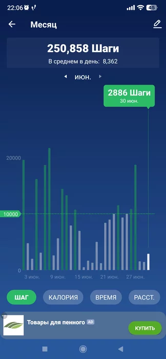 Отчёт по ходьбе за июнь - 257,953 шага