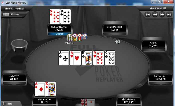 Leo_Manowar, ты крайне не прав. Они все за финалкой - достаточно квалифицированные игроки (за исключением СтивиДжи и дедушки). Если они и делали какие-то очевидные нам ошибки, то на это были причины. Не каждый день садишься играть за 8.5 млн бакинских и вряд ли будешь рейзить каждую руку, через раз ставить супербаррели, трибетить все рейзы баттона и пулять 7беты в блеф. Думаю, у любого на месте этих парней игра бы отличалась от обычной. Я смотрел и другие финалки. И мне тоже не нравилось, как отдельные раздачи играли Крис Оливер, Айзек Хэкстон, Галлен Холл, Макфи, Мурман и прочие суперпро. Играл бы ты такую финалку - думаю, тоже прилично бы возмущался на свою игру, смотря повтор.