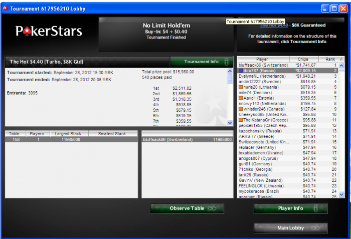 Финалка была ваще не сложная(ну или опыта поднабираюсь). Этот англичанин выбил всего 2-х, 1 шортстек другого, остальных я, в ХА вышел с перевесом 2/1, ну и не долго он мучился. Параллельно играл БИГИ и ХОТЫ - не удачно.