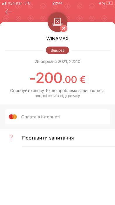 Ребята всем привет, делаю депозиты е кешауты довольно длительное время с помощью монобанка. Недавно, возникли проблемы, во время активной сесии, я не заметил что у меня на винамаксе мало денег и стал пополнять, на телефон стали приходить коды смс с чёрточками (допустим 22-54-57) , я вводил их как и приходили и короче после 5 попытки, монобанк просто не пропускал мои депозиты. После сесии я связался с ними что бы они разобрались в вопросе. Им потребовалось более пяти суток, что бы понять причину проблемы. Они ссылаются на банк Экваер( это не название а определение побочного банка который стоит между моно и самим винамаксом видимо). депозиты у меня всё таки прошли, но проходят они допустим 1 раз из 10 попыток..Я так понимаю что и с кешаутами может быть подобюная проблема. То будет нормально на карту выводиться, то будет возвращаться обратно на рум.У кого то были подобные проблемы с Монобанком, если да, как решились?
