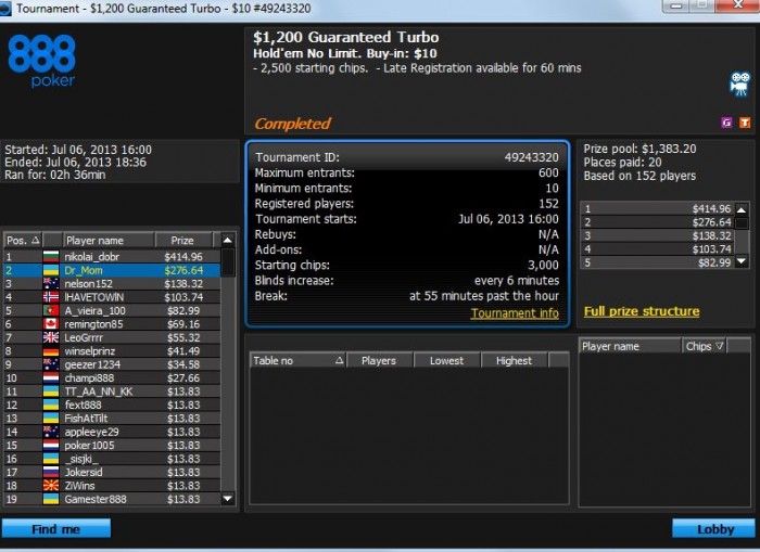 Hero (CO): 166,6848 players post ante of 300,