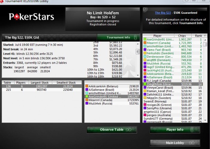 К топ18 вышел с 220к (4 средних), у топ2 стека 130к было, но монетки в таким стадиях проигрывать непозволительно: