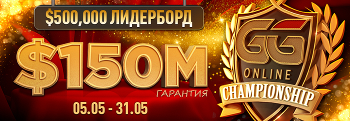 🔊 Уважаемые игроки, напоминаю, что сегодня GGPoker начал проведение КРУПНЕЙШЕЙ серии онлайн-покера: с 5 по 31 мая наши игроки разыграют между собой гарантированный призовой фонд на потрясающую сумму $150,000,000 в GG Online Championship!