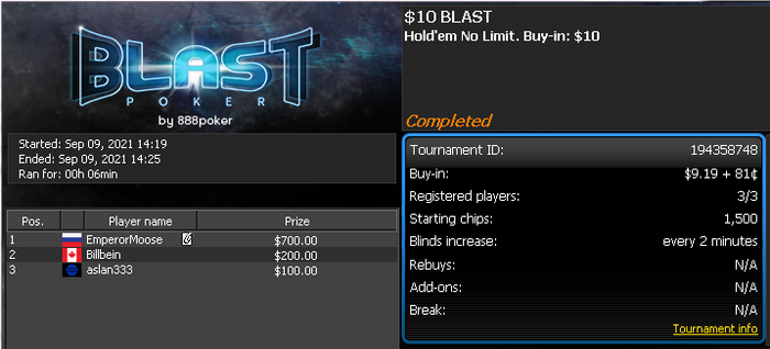 Далее пробую пройти в турнир за 8,80 через саттелит в 23:33