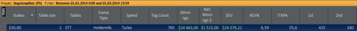 Отыграл я 765 турниров на 30 лимите, что вдвое больше, чем за предыдущий месяц.