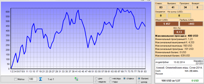 3. Сумма ставки выбирается исходя из размеров банка, как правило. Либо стандартный размер 100 у.е скажем и так, пока БР не подрастёт и как в покере не поднимешься на "новый лимит", либо % от банка. Скажем 1%. Когда будет отдельный банк серьёзный, скорее всего буду придерживаться первой схемы, мне она более симпатична. А в данный момент суммы варьирую в диапазоне 20-100$, мера опять таки исключительно вынужденная.