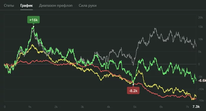 volgoNike @ 07.01.26я 100-ый лимит играл почти месяц почти 3к турниров, пока реги, на которых были корректировки не перестроились, и с регваром 90% времени, я показал 25 фишек