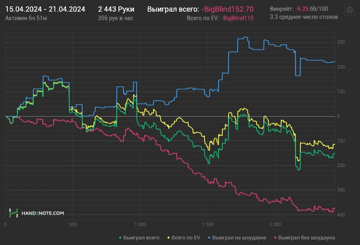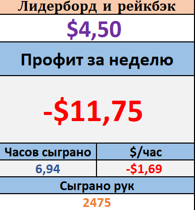 Вторая неделя месяца снова в плюс. Но играл очень мало, конечно. Отец идёт на поправку, только вот теперь другая проблема. Как его уговорить пойти на реабилитацию. Он настроен ехать к себе домой. А одного его оставлять уж точно нельзя. Но, ничего, разберёмся.