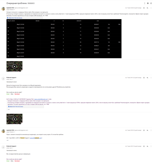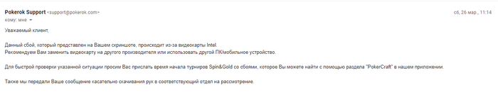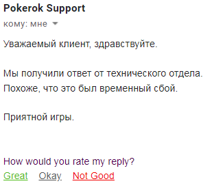 Опишу ещё один пример профессионализма службы поддержки покерка.