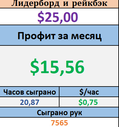В покере снова был только кэш. Небольшой минус по катке и плюс в общем, благодаря рейкбэку.